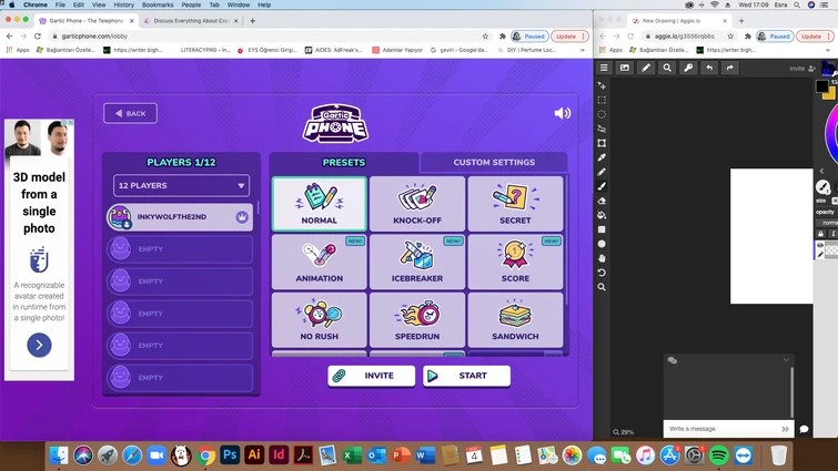 Invite your friends to a voice call (e.g.: Gartic is an online drawing game in which players have to guess what the other players are drawing... Gartic is an online drawing game in which players have to guess what the other players are drawing.